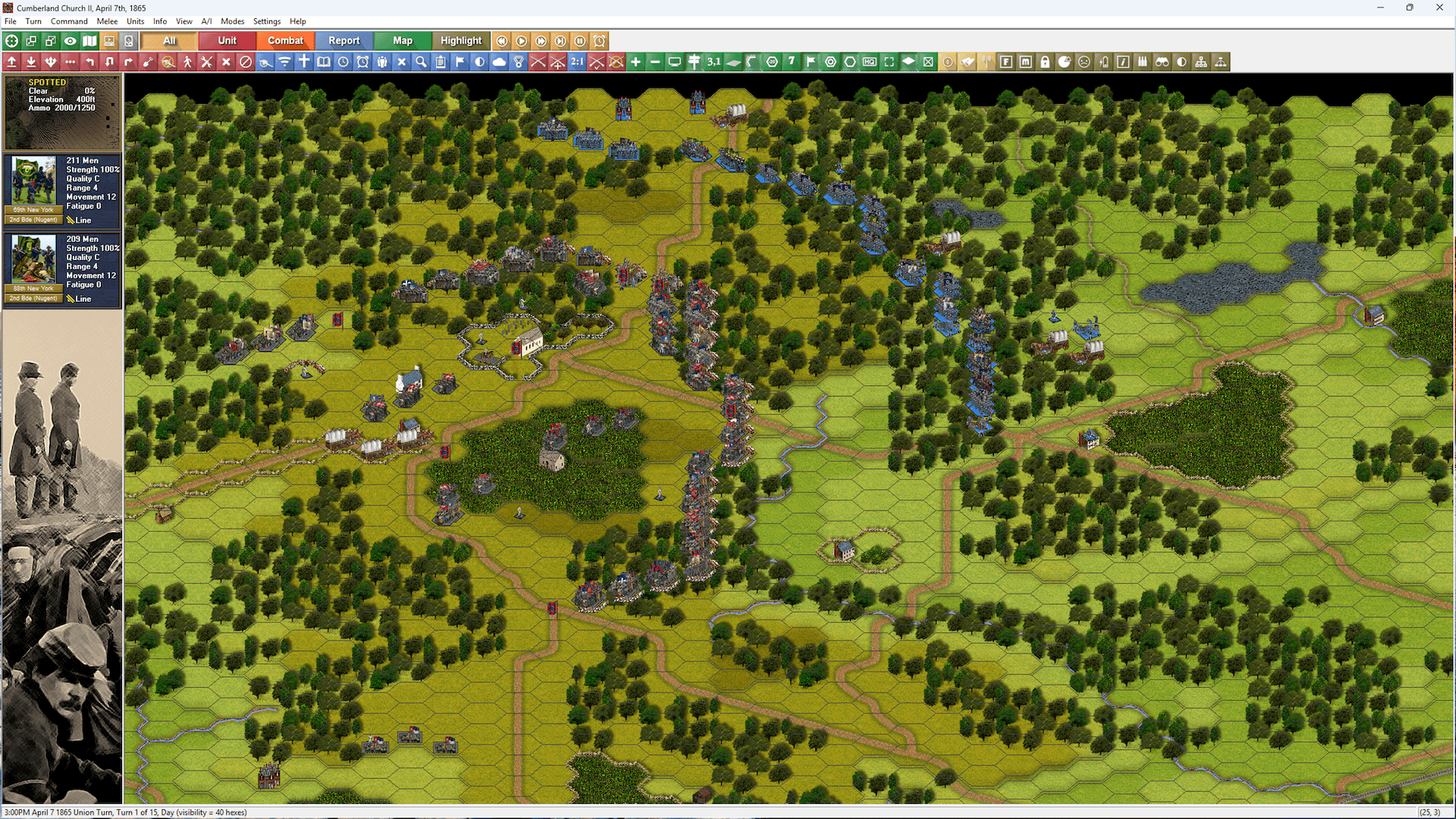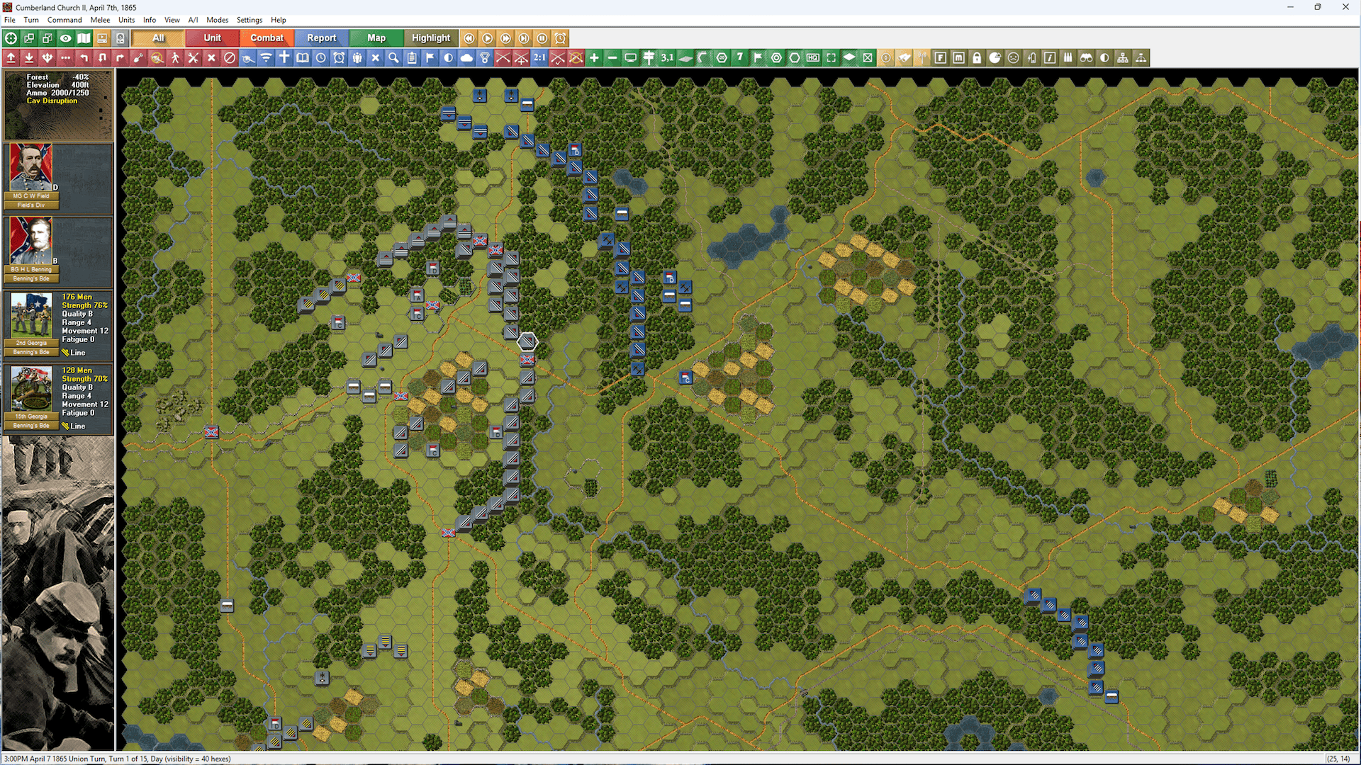 Detailed Orders of Battle for Union and Confederate forces, including room for what-if expansions and reinforcements.
