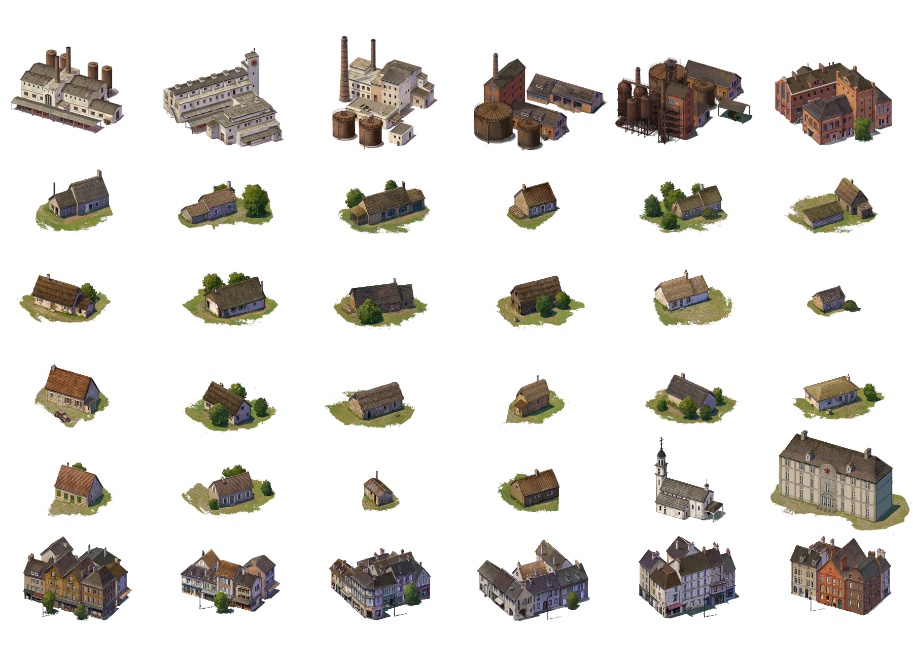 Below you can see some initial versions of Eastern European buildings, prior to testing them in game.